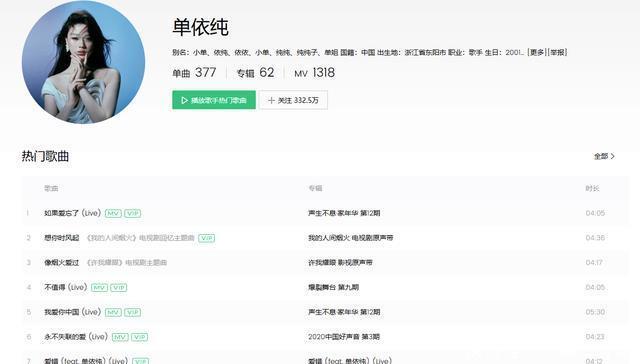 谈论较少,浏览较多。 我的评价是:路人关注度较高,核心粉丝数量并不算非常多。 如果等到什么时候,单依纯的谈论数据和总浏览数据的排名几乎相同,那单依纯的影响力就会非常夸张了。 说一个观点,单依纯距离华语乐坛年轻一代头部,还有着大概3-5年的距离。 一个比较的直观的转变就是:开大规模体育场巡演。 各位觉得,单依纯如今的音源,撑得起体育场巡演吗?我想除非是“忠粉”,否则很难说出这种违背常识的话。 她还需要大量的出圈个人原唱/翻唱单曲支撑,流量已经足够高了,接下来,多出OST,多出高质量翻唱,撑起一场演唱会,去线下证明自己。 不知道大家喜欢哪位歌手呢? 喜欢文章的朋友可以点赞并分享噢!